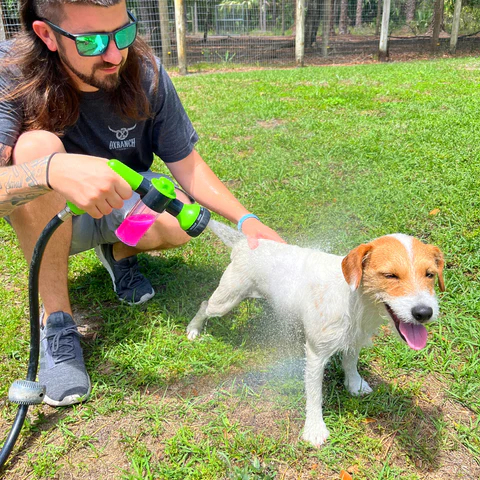 The Dog Jet ensures that everyone's furry friend is not only clean but also healthy. With its 2x more pressure than an average hose, 8 specialized spray modes, and adjustable soap dilution, it is safe to be confident that the Dog Jet will remove any stubborn dirt hiding underneath the coat. Whether it's mud, poop, sweat, or dandruff, the Dog Jet is designed to eliminate it all, leaving the dog with a cleaner and healthier coat.